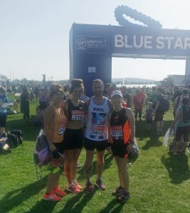 I knew I had less than half a mile left and I knew it was a definite PB unless I died or something! But I wasn’t sure how close to a 3:15 I was. I saw my friends Mel and Al and I was on fire. The crowd were cheering and then I could see the finish line. I was laughing, crying and sprinting; I was on cloud nine and felt like I had won gold. I saw Mel heading to the finish area and I ran over with my arms out crying and exclaiming how overjoyed I was. I then saw Paul and could’t have been more grateful for him running alongside me, particularly when I was starting to hurt.